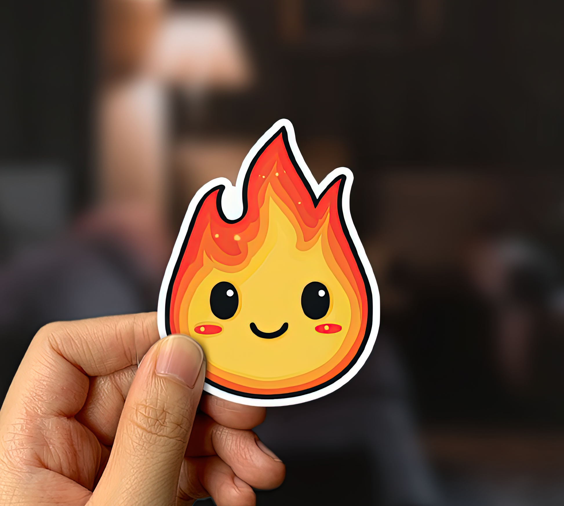 Introducing the Cute Flame Sticker, a fiery and playful addition to your collection! Add some heat to your belongings with this fun and quirky sticker. It's sure to spark some smiles and ignite your sense of humor. Get your hands on it now and let the flames of joy spread!